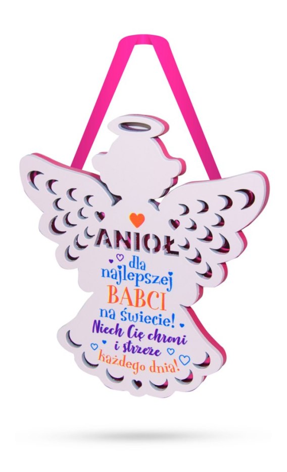 Zawieszka od serca w formie Aniołka to niezapomniany pomysł na prezent. Wykonana z solidnej płyty MDF z wyżłobionymi lustrzanymi zdobieniami i napisami z krótką sentencją