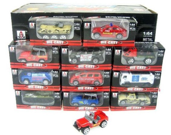 Pojazdy metalowe w skali 1:64 w asortymencie , pakowane pojedynczo w pudełeczko 11x5x4cm