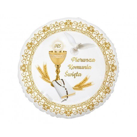Balon foliowy Pierwsza Komunia Święta okrągły 46cm FG-OPKS