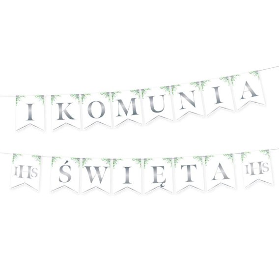Baner komunijny I Komunia Święta Eukaliptus srebrny 240cm 131855