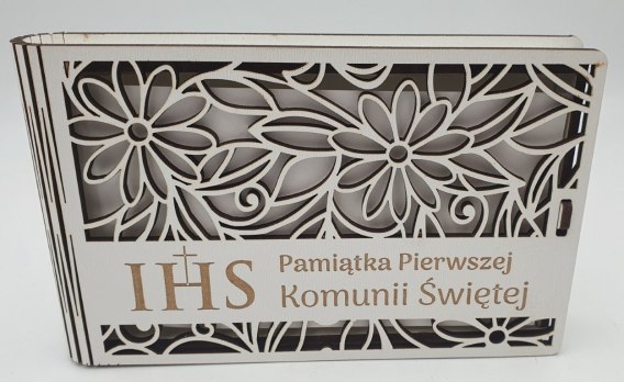 • Banknotówka na pieniądze 10 x 15,5cm ażur biała KOMUNIA ŚW IHS