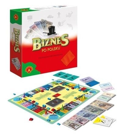 plansza, karty „Los" - 8 szt., karty „Niespodzianka" - 9 szt., karty „Dowód własności" - 23 szt., karty „Zawód" - 5 szt., karta „Poseł" - 1 szt., karta „Senator" - 1 szt., karta „Radny Rady Miasta" - 1 szt., karty „Legitymacja Partyjna" - 2 szt., Karty „Zasiłek" - 5 szt., pionki - 5 szt., kostka do gry, banknoty: 200 zł - 25 szt., 100 zł- 25 szt., 50 zł- 25 szt., 20zł - 25 szt., 10 zł - 25 szt., czeki: 10000 zł - 4 szt., 5000 zł - 11 szt., 1000 zł - 20 szt., 500 zł - 35 szt., elementy 1-krotnego stopnia inwestycji - 40 szt., elementy 5-krotnego stopnia inwestycji - 15 szt., instrukcja do gry.