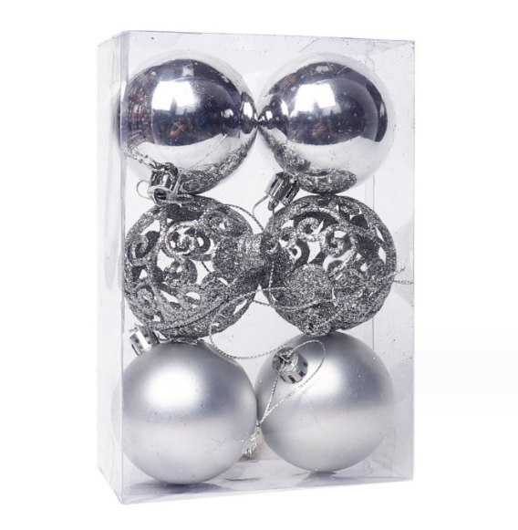 Bombki 6szt. SREBRNE 8cm XVR-104S