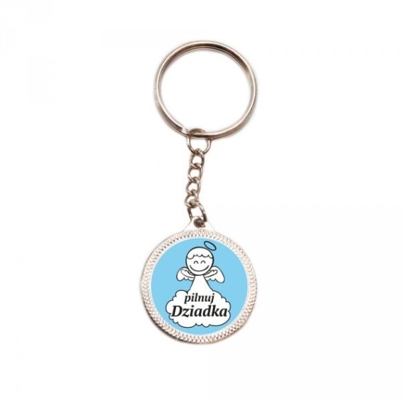 Breloczek 6szt. metalowy z żelową naklejką aniołek "Pilnuj Dziadka" | DIL-PH-BREL32/S-D-02