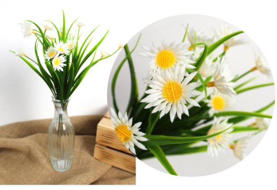 Bukiet 2szt sztuczny rumianek z trawą 38 cm 7 łodyg BIAŁY MZ-080A