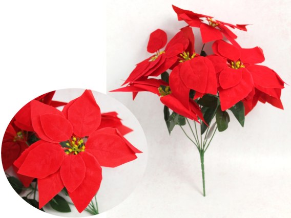 • Bukiet gwiazda betlejemska poisecja welurowa wys. 40 cm 7 łodyg (7 kwiatów 20 cm) CZERWONA MH-044