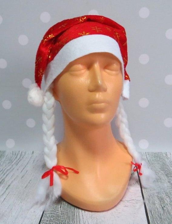 Czapka 12szt. Mikołajki z warkoczykami 24x32 cm SN30499