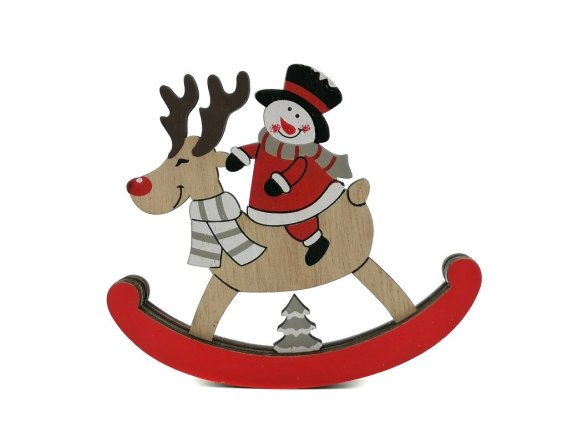 Dekoracja drewniana bałwanek z reniferem 10x9cm
