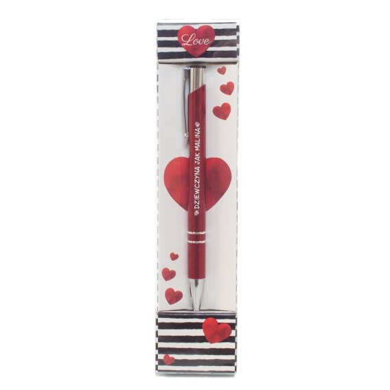Długopis w opakowaniu z napisem "DZIEWCZYNA JAK MALINA"