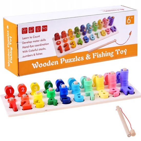 Drewniana edukacyjna układanka cyfry wędka | ZA3109