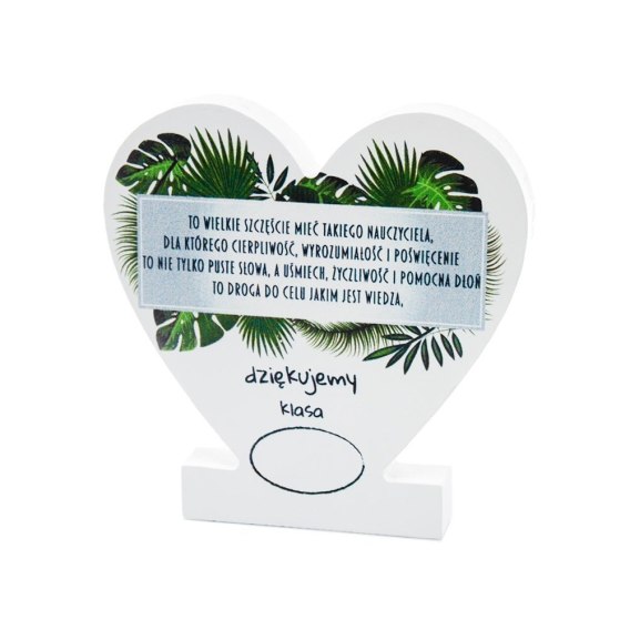 Drewniana tabliczka serce z podstawką " To wielkie szczęście mieć takiego nauczyciela"