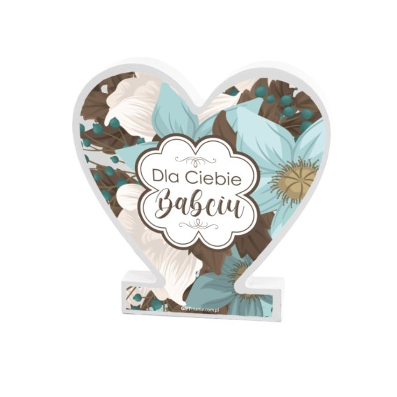 Drewniana tabliczka serce z podstawką wzbogacona lakierem UV z napisem " Dla Ciebie Babciu" 14.8x15x1,5 cm