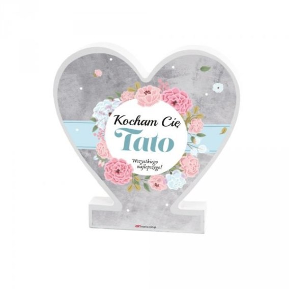 Drewniana tabliczka serce z podstawką wzbogacona lakierem UV z napisem " Kocham Cię Tato..."