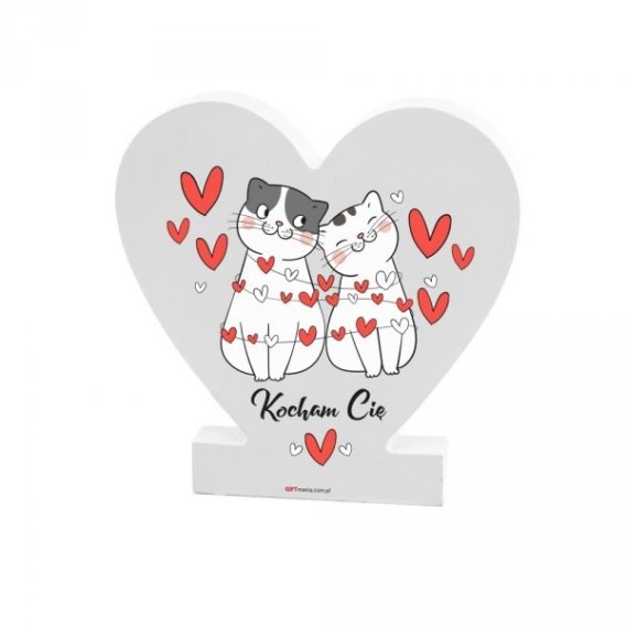 • Drewniana tabliczka serce z podstawką wzbogacona lakierem UV z napisem "Kocham Cię"