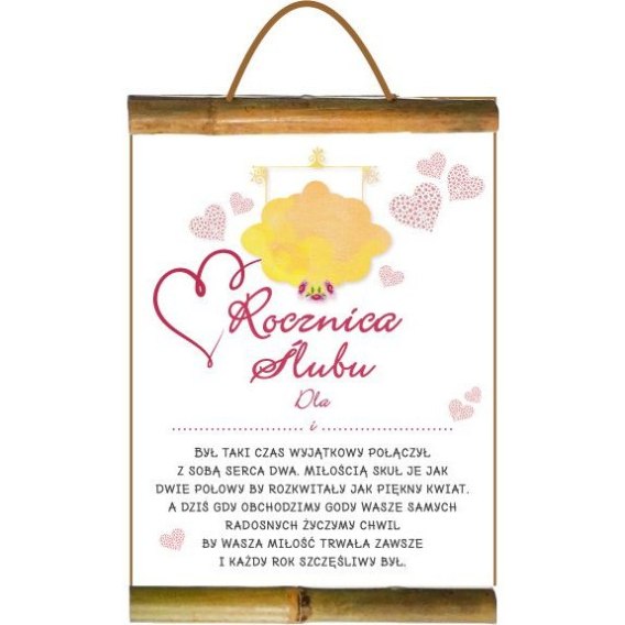 Dyplom z życzeniami stylizowany na stary, z bambusową listewką oraz zawieszką z naturalnego sznurka.