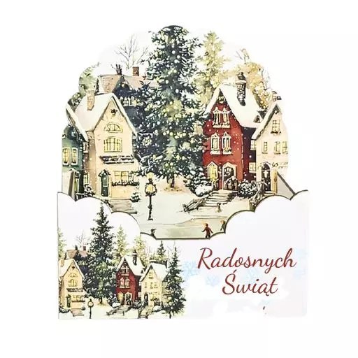 - Design: kolorowy nadruk z gotowymi życzeniami świątecznymi
