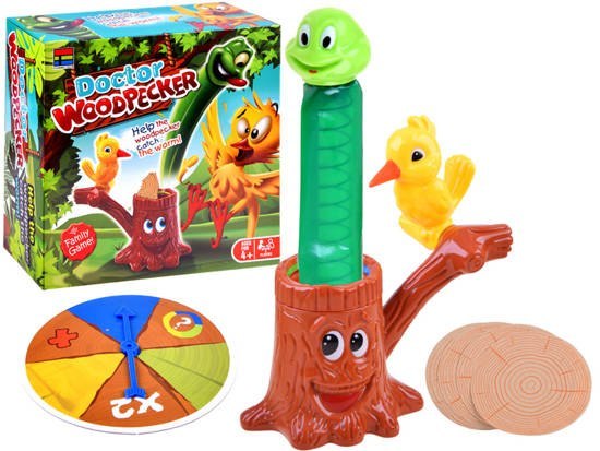 Gra Dzięcioł chore drzewo to rewelacyjna gra dla całej rodziny. Świetnie sprawdzi się podczas długich wieczorów. Celem gry jest pozbycie się z pnia drzewa ukrytego w nim szalonego robaczka, który je podgryza :).