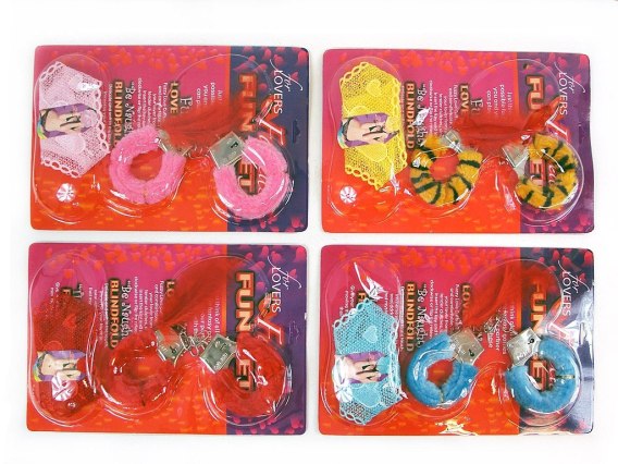Kajdanki metalowe z futerkiem+stringi+piórko
