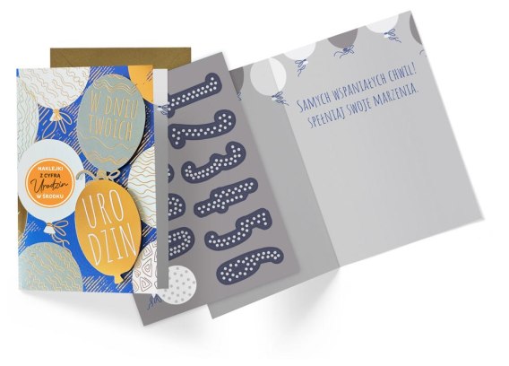 To idealny wybór łączący przyjazną cenę z jakością. Kartki z tej serii mają wyjątkowy dodatek - naklejki z cyferkami, z których można ułożyć dowolny wiek solenizanta.