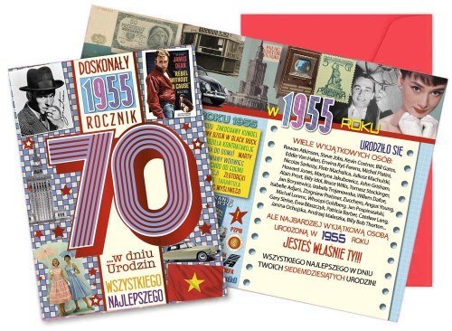 Karnet Vision "Urodziny 60" V-122 Kartka z serii To Był Rok, w której w środku i na froncie znajdują się ciekawe wydarzenia z danego roku. Wykonane z niezwykłą dbałością o szczegóły, zdobione folią holograficzną i w całości pokryte folią matową dla podkreślenia efektu prostoty i elegancji. Każdy karnet zawiera w środku starannie dobrane życzenia oraz dopasowaną kopertę. W powiększonym formacie 140x190 mm. Cechy szczegółowe: wnętrze: kolorowe, wyjątkowe życzenia w środku, w komplecie: dopasowana kolorystycznie koperta. wymiary kartki 14 x 19 cm okazja: urodziny