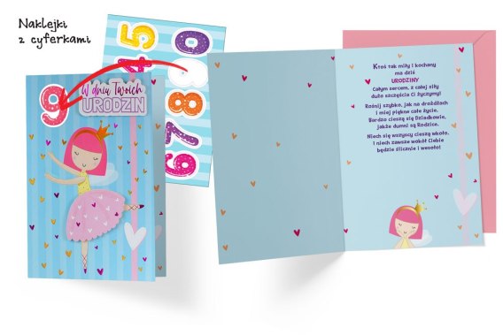 Karnet Urodziny dziecięce wymienne cyferki księżniczka | DKP-049