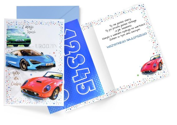 Karnet Urodziny wymienne cyfry, samochody DK-1227