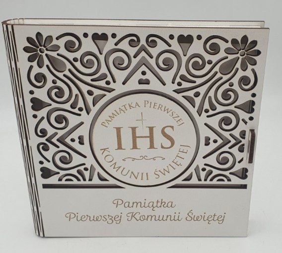 Kasetka kwadrat 16 x 16cm ażur biała KOMUNIA ŚW