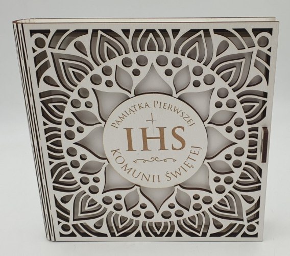 Kasetka kwadrat 16 x 16cm ażur biała KOMUNIA ŚW