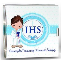• Kasetka kwadrat (życzenia + kopertka) 16 x 16cm KOMUNIA ŚW NIEBIESKA