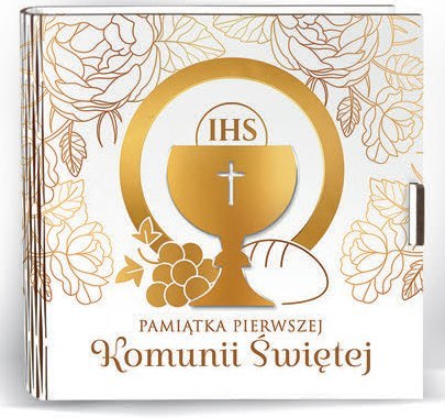 Kasetka kwadrat (życzenia + kopertka) 16 x 16cm KOMUNIA ŚW Złoty Kielich