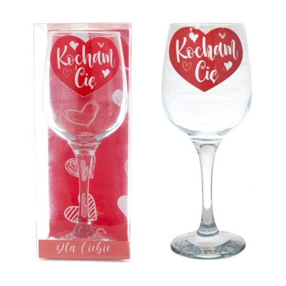 • Kielich walentynkowy do wina 22cm w ozdobnym opakowaniu z napisem "Kocham Cię"