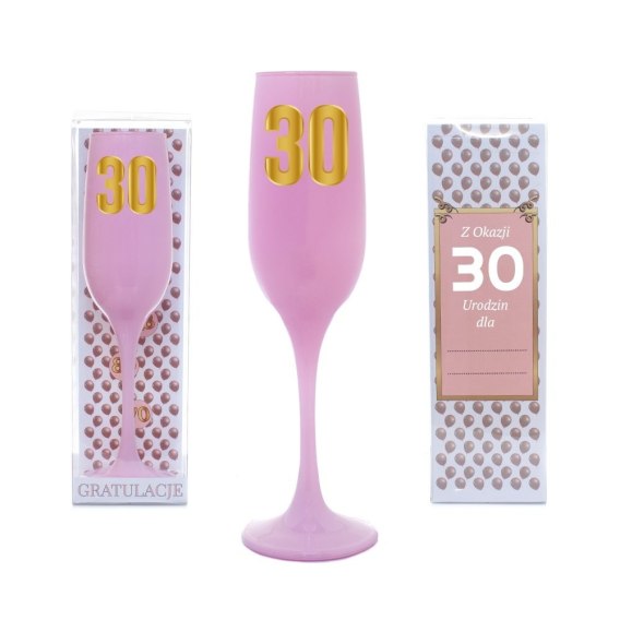 Kieliszek urodzinowy do szampana różowy w ozdobnym opakowaniu - Z Okazji 30 Urodzin dla...