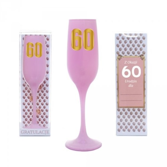 Kieliszek urodzinowy do szampana różowy w ozdobnym opakowaniu - Z Okazji 60 Urodzin dla...