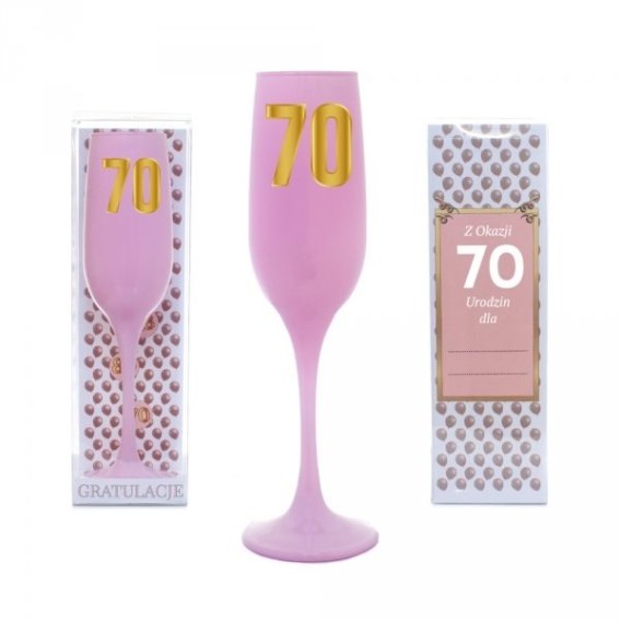 • Kieliszek urodzinowy do szampana różowy w ozdobnym opakowaniu - Z Okazji 70 Urodzin dla...