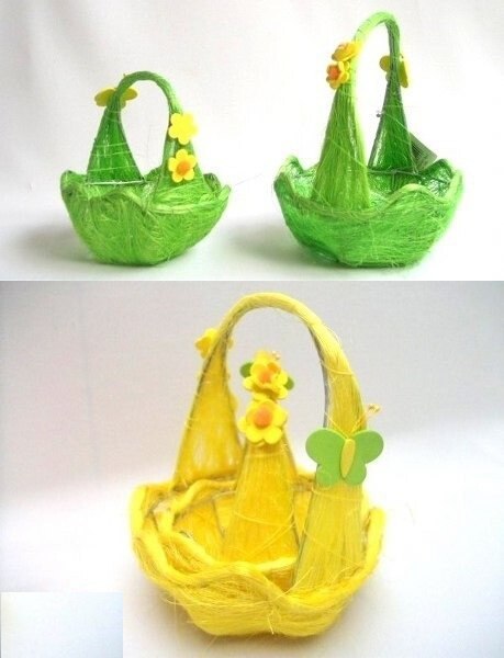 Komplet 2 koszyczków wielkanocnych wykonanych z drutu i sizalu 3120