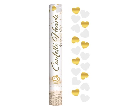 Konfetti pneumatyczne złote i białe serduszka (foliowe i papierowe) 40 cm KP-ZB40