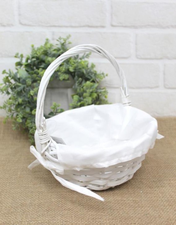 Koszyk wiklinowy okrągły wyściełany materiałem BIAŁY TG70546
