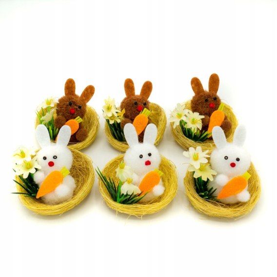 • Króliczki wielkanocne w gniazdkach 5,5 cm 6 szt. | WKZ-8277