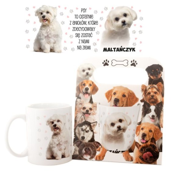 Kubek ceramiczny w ozdobnym opakowaniu - Maltańczyk - "Psy to ostatnie z aniołów..."