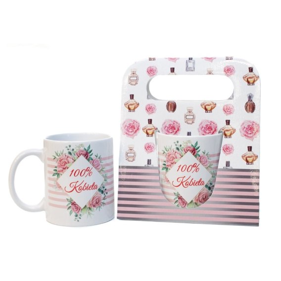 Kubek ceramiczny w ozdobnym opakowaniu z napisem "100 Kobieta"