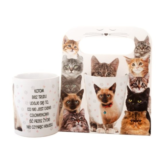 • Kubek ceramiczny w ozdobnym opakowaniu z napisem "Kotom bez trudu udaje się to..."