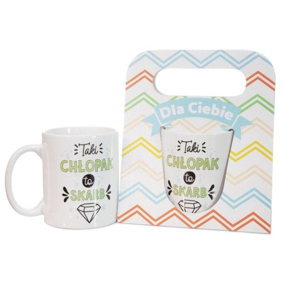 Kubek ceramiczny w ozdobnym opakowaniu z napisem "Taki chłopak to skarb"