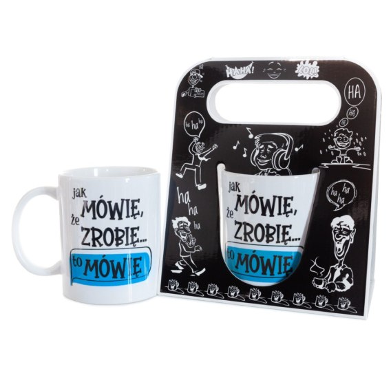 Kubek ceramiczny z napisem "Jak mówię, że zrobię... to mówię" , w ozdobnym czarnym opakowaniu