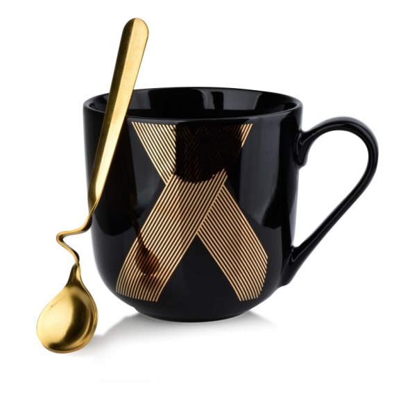 Kubek + łyżeczka LOLA CZARNY złoty X