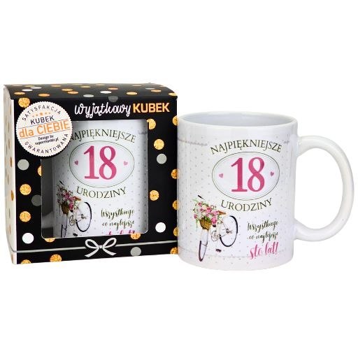 Kubek na 18 urodziny dla kobiety - idealny prezent z kolorowym nadrukiem