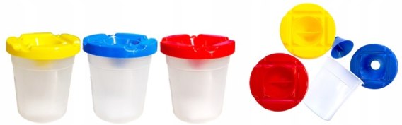 Kubeczek z blokadą wylania zabezpiecza miejsce prac plastycznych.