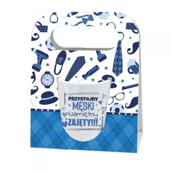 Kubek w torebce z napisem Przystojny Męski Namiętny Zajęty