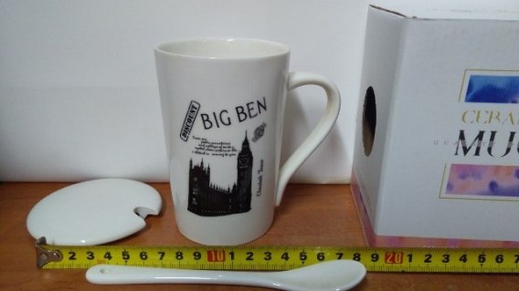 Kubek z łyżeczką i pokrywka MIASTA | 12-SH23