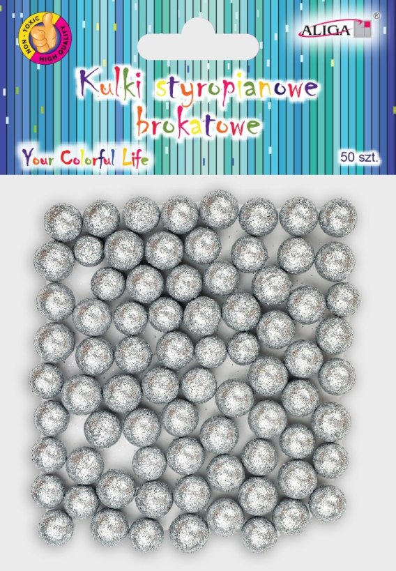 • Kulki styropianowe brokatowe srebrne 10mm 50szt. | KSB-1088