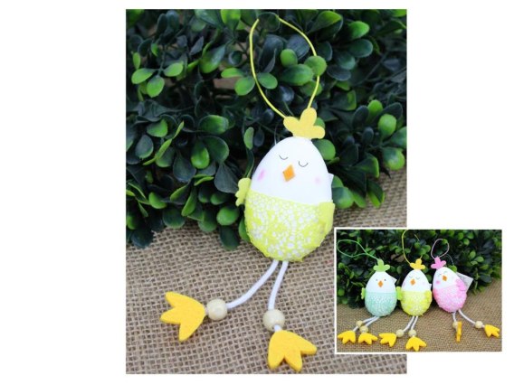 • Kurczak 12szt wielkanocny w kształcie jajka z zawieszką 13x5 cm mix kolor BAR-22112